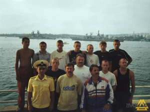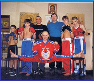В клубе "Александр Пересвет", начало 2000-ых. Слева второй - Алексей Папин. Сзади в центре - Сергей Демин Константина Новикова я назвал духовным лидером не случайно. Кикбоксинг или каратэ или бокс без духовного наполнения – просто драка. Вопрос духовного наполнения деятельности – вопрос первостепенной важности. Особенно для морского офицера Новикова, воспитанного на великих победах русского флота (о некоторых из которых я писал в своем блоге) в традиции ответственности за свою страну. 2002 год. г. Севастополь. 44-ый спортивный клуб флота. Сборная России по кикбоксингу на кубке Андрея Первозванного. К.Новиков слева А потому для Константина Новикова вопрос не может стоять по другому как связывать свою деятельность с традиционной для России духовностью – с православием. И тут очень важно отметить, что для Новикова православие - это не ритуалы и каноны, а живая история Руси и России, история побед и испытаний, которые страна прошла с православием. А потому от него часто можно услышать критику современной церкви или отдельных ее представителей. И потому и в тренерской клуба, и в тренировочным зале «Пересвета», и даже в тренировочном зале ЦСКА рядом висят с иконами великих русских Святых висят портреты великих русских Воинов.