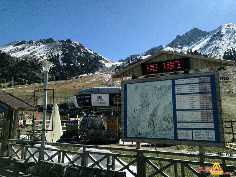 Прежде всего, теперь проезд на машине вверх от Медео до Чимбулака, куда мы ездили пять лет назад, закрыт. Туда можно проехать только на редких экологически чистых автобусах и газовых такси. Ни или по очень длинной канатке, которая в это время была закрыта на профилактику перед наступающим сезоном. Мы доехали до Чимбулака на автобусе.