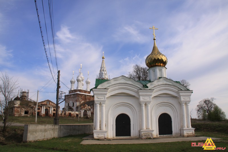 Недействующий и полуразрушенный Благовещенский монастырь значительно старше Успенского, к которому сейчас относится. А раньше было наоборот. С моста через Тезу открывается изумительный вид на него.