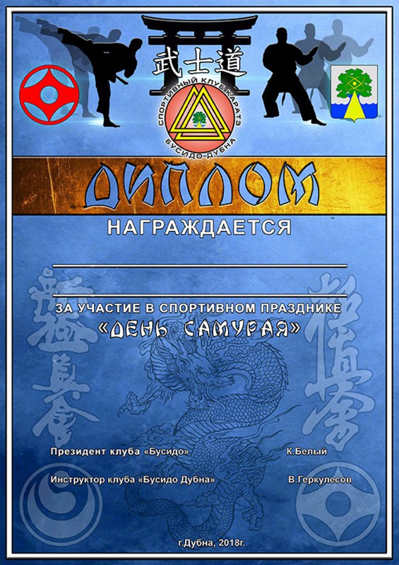 - Ассоциация Киоксинкай России отметила благодарностями за помощь в проведении отборочного турнира АКР СК "Бусидо" и его представителей – Юлию Комарову, Евгения Бессонова, Олесю Мананникову, Анастасию Коротееву.