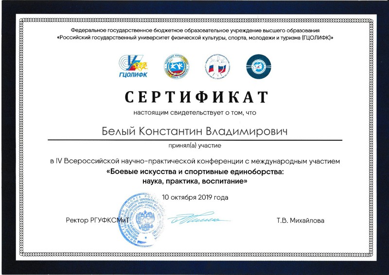 - Участие в научных мероприятиях – конференции Российского университета физкультуры и спорта (РГУФКСМиТ).