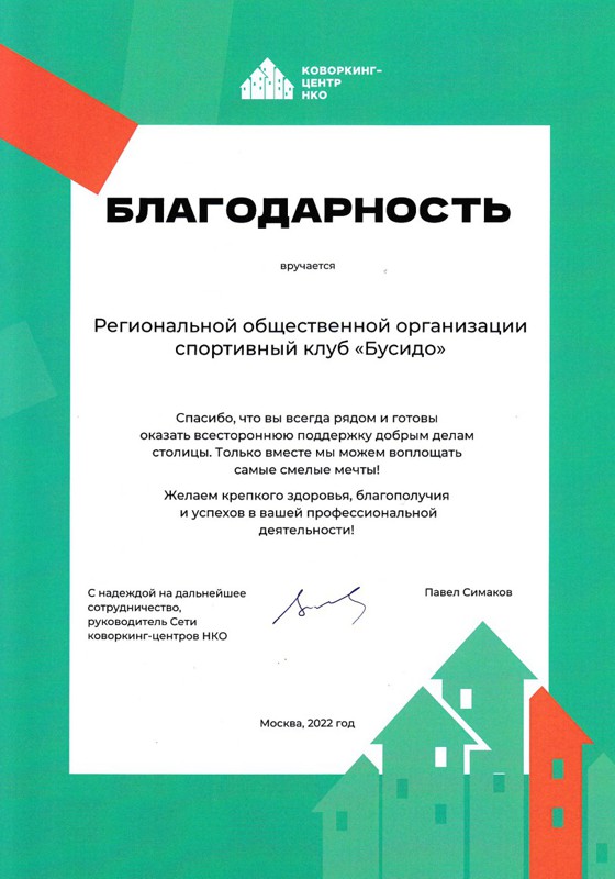 Благодарность Московского дома общественных объединений