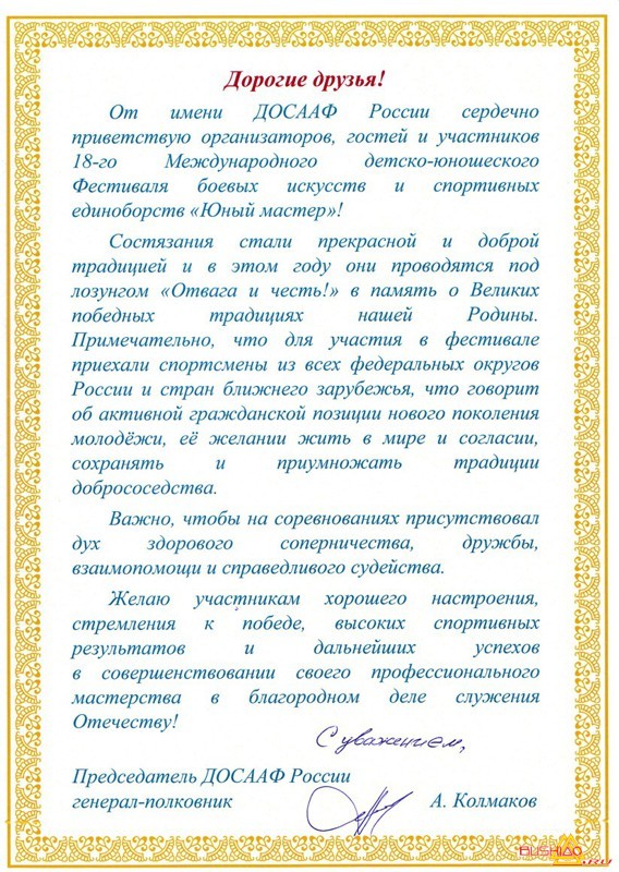 Приветствие Председателя ДОСААФ России 21