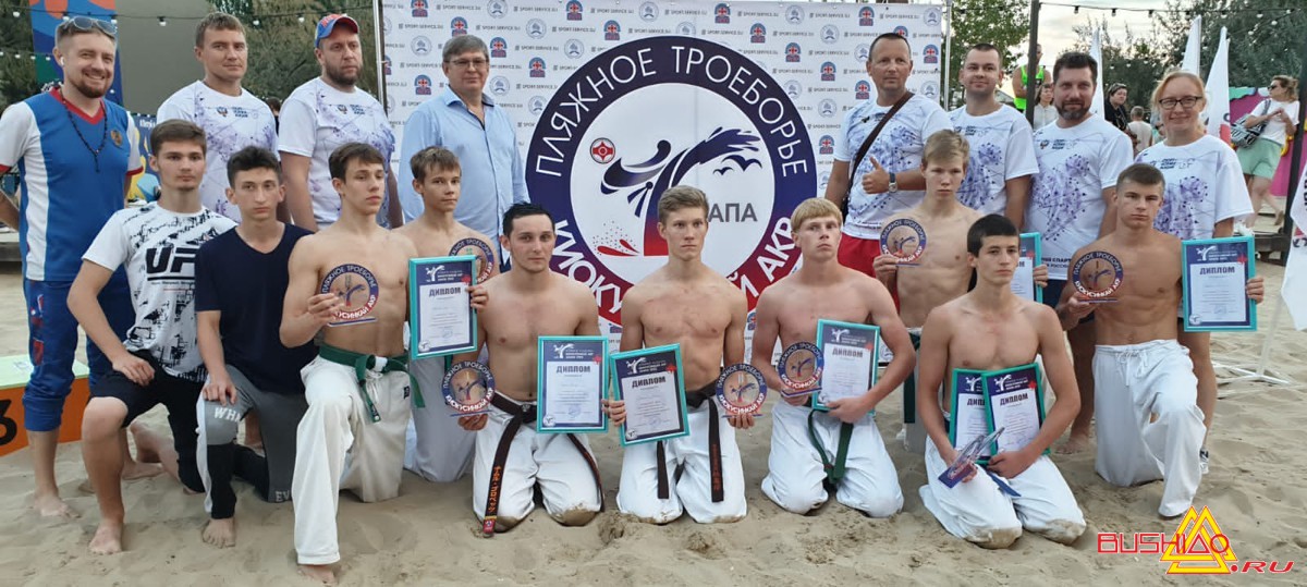 В рамках турнира прошел дебютный турнир по пляжному троеборью киокусинкай.