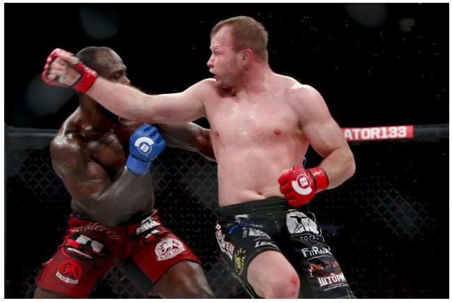 Ивент ознаменовался возвращением "Шторма" Шлеменко, который во втором раунде нокаутировал бэкфистом Мелвина "Беспощадного" Манхуфа.