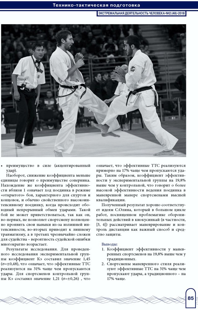"Влияние маневрирования на эффективность технико-тактических действий в киокусинкай"